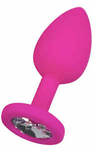 Plug anal en metal color plata, con joya en la base. Disponible tamaño M y G